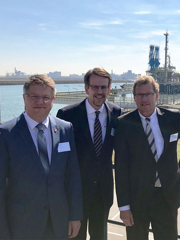 Ministerpräsident Güther und Maritimer Koordinator der Bundesregierung Brackmann informieren sich beim LNG-Terminal in Rotterdam